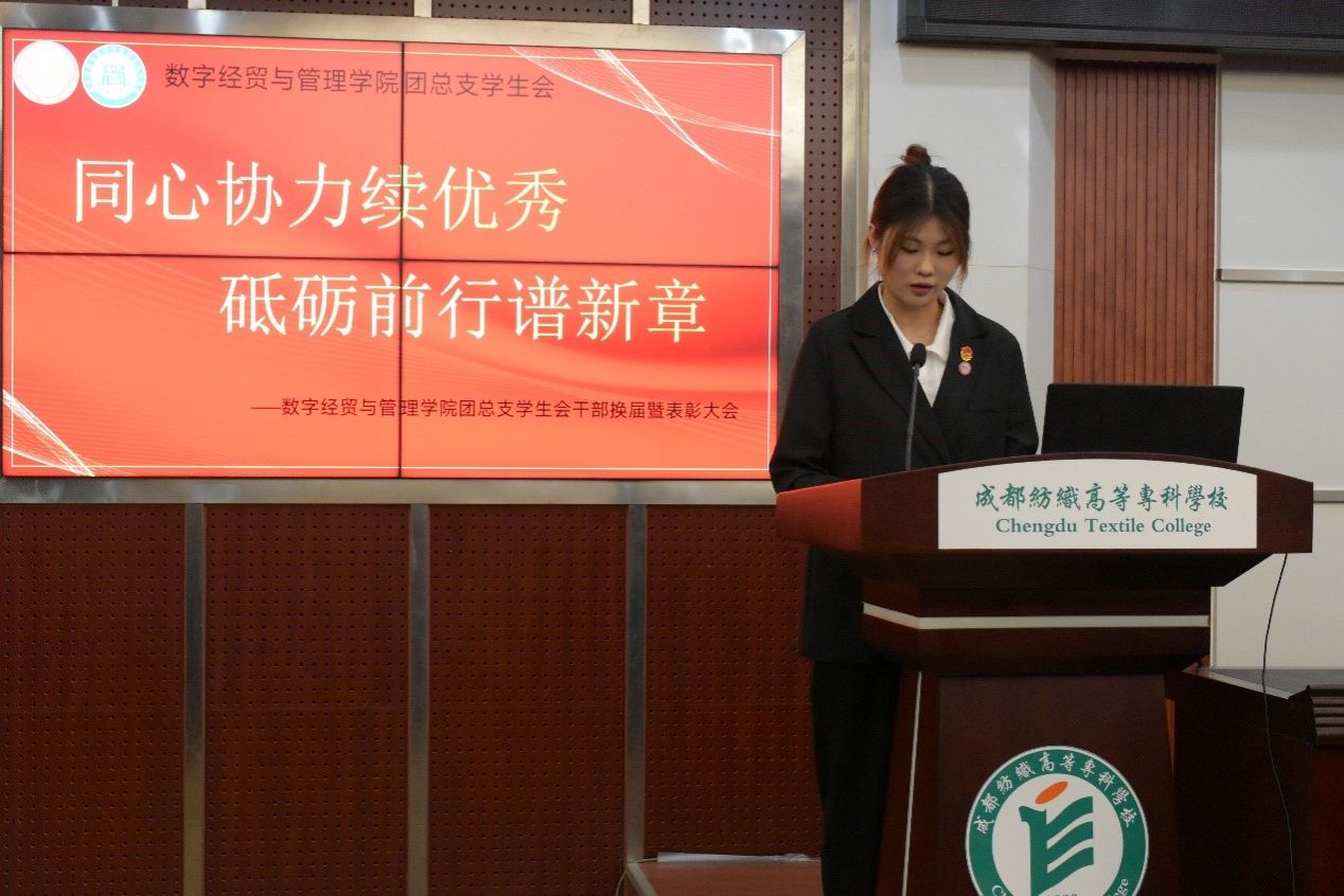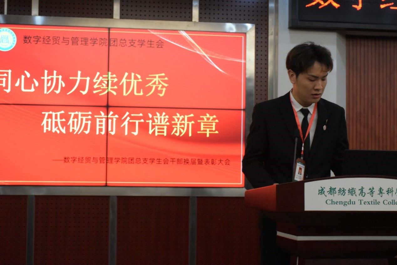 6月末,数字经贸与管理学院团总支学生会干部换届暨表彰大会在北苑弧形会议室成功举行。学院党总支书记王霖、党总支副书记兼团总支书记何酉宁,学院党政办主任凌书娟、专职辅导员黎梦、李韵、贾虹宇老师,以及各兄弟学院代表,班级代表和数字经贸与管理学院团总支学生会全体干部参加此次大会。
