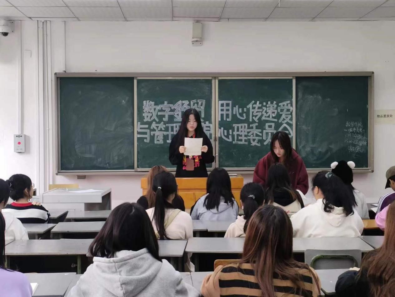 10月24日中午,数字经贸与管理学院2023级心理委员工作会在南苑致知楼b104教室召开。心理部指导老师贾虹宇、心理部部长、大一各班心理委员参加此次会议。
