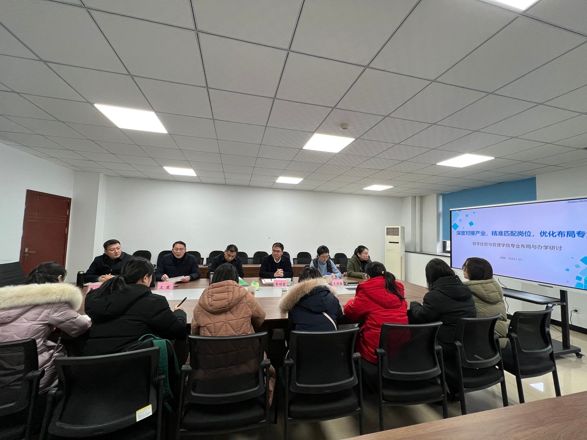 为深度对接产业、精准匹配岗位、优化布局专业,进一步提升我校财经商贸类专业人才培养质量服务区域经济的能力。1月25日数管学院在融创楼A402召开了专业布局与办学研讨会。学校校长孙锐、副校长李明富亲临会议指导,数管学院班子成员、办公室主任、骨干教师等参加了研讨会。