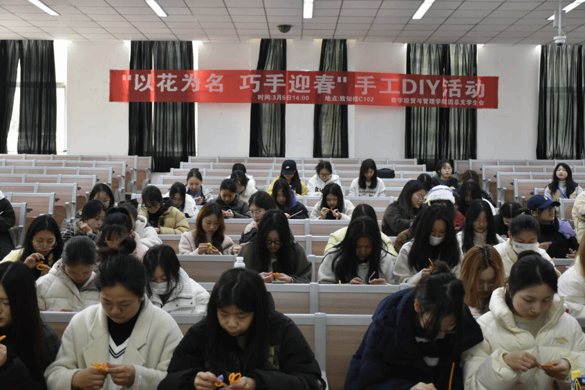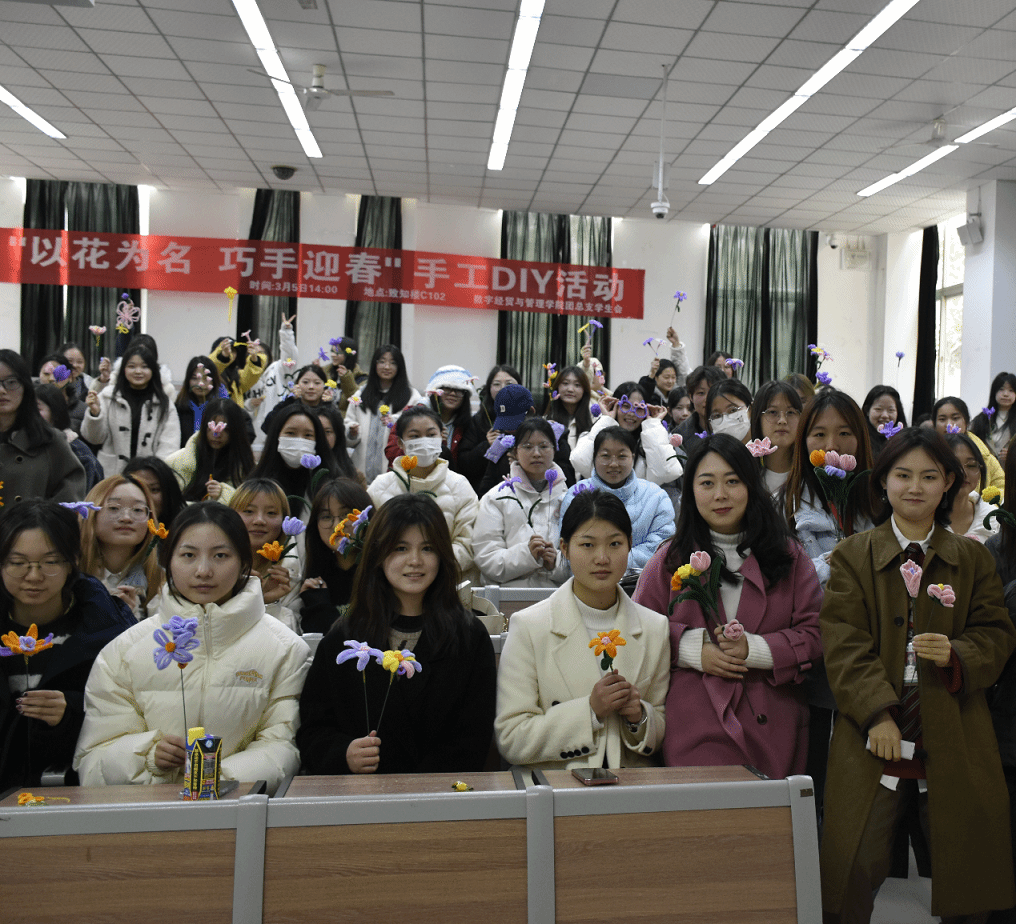 在这个春暖花开的三月,迎来了女生佳节。3月5日下午,数字经贸与管理学院团总支学生会心理部在南苑致知楼C102举行了“以花为名,巧手迎春”的女生节手工DIY活动,学院心理部指导老师贾虹宇和各班女生共同参与了此次活动。