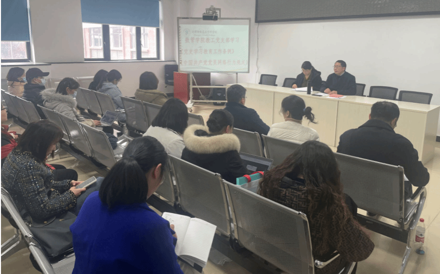 党总支书记王霖重点介绍了制定《条例》的背景、意义和《条例》中党史学习的主要内容、主要形式等方面的内容。强调党的历史是最生动、最有说服力的教科书。引导教工党员深入思考如何学好党史、用好党史,从党的历史中汲取智慧和力量,做到学史明理、学史增信、学史崇德、学史力行。