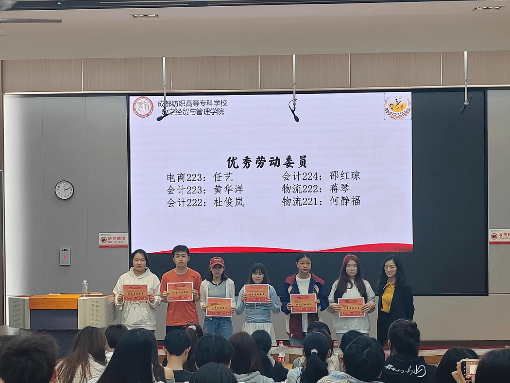 4月2日下午,数字经贸与管理学院2023-2024年度劳动教育总结表彰暨总结大会在致知楼C104顺利举行。学院党总支副书记兼团总支书记何酉宁、劳动教育指导老师胡春、团总支学生会劳动教育部全体成员、2022级、2023级各班班长、劳动委员及受表彰人员参加了此次大会。