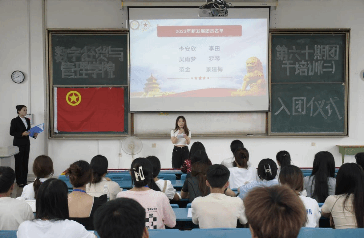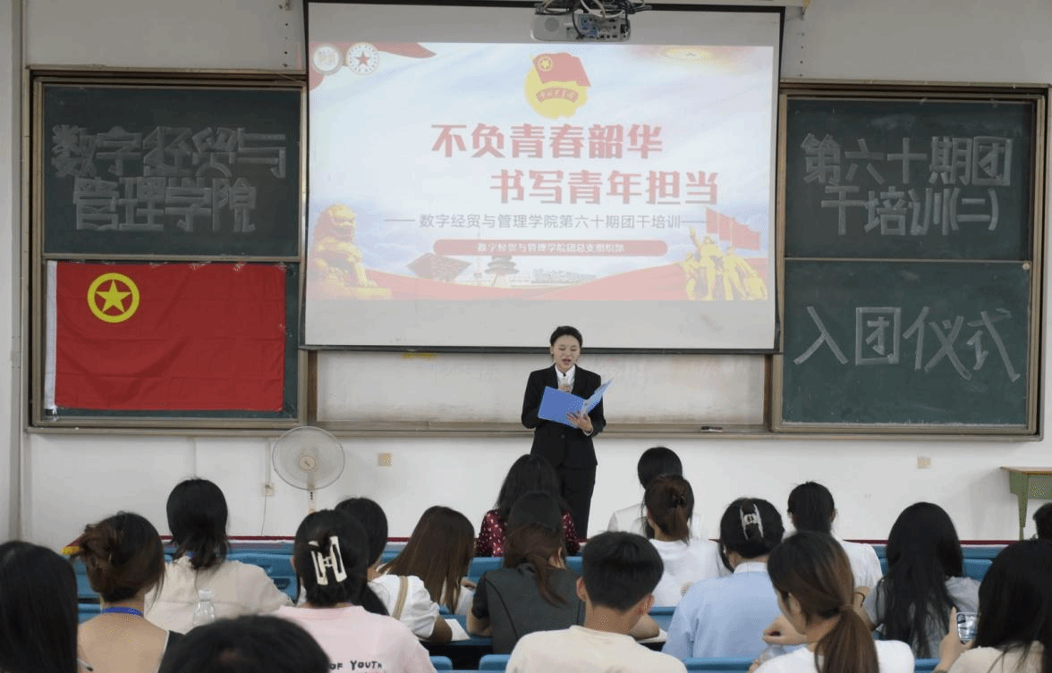 5月21日,数字经贸与管理学院入团仪式在致知楼C301顺利举行,学院党总支副书记兼团总支书记何酉宁、团总支学生会指导老师李韵参加入团仪式。