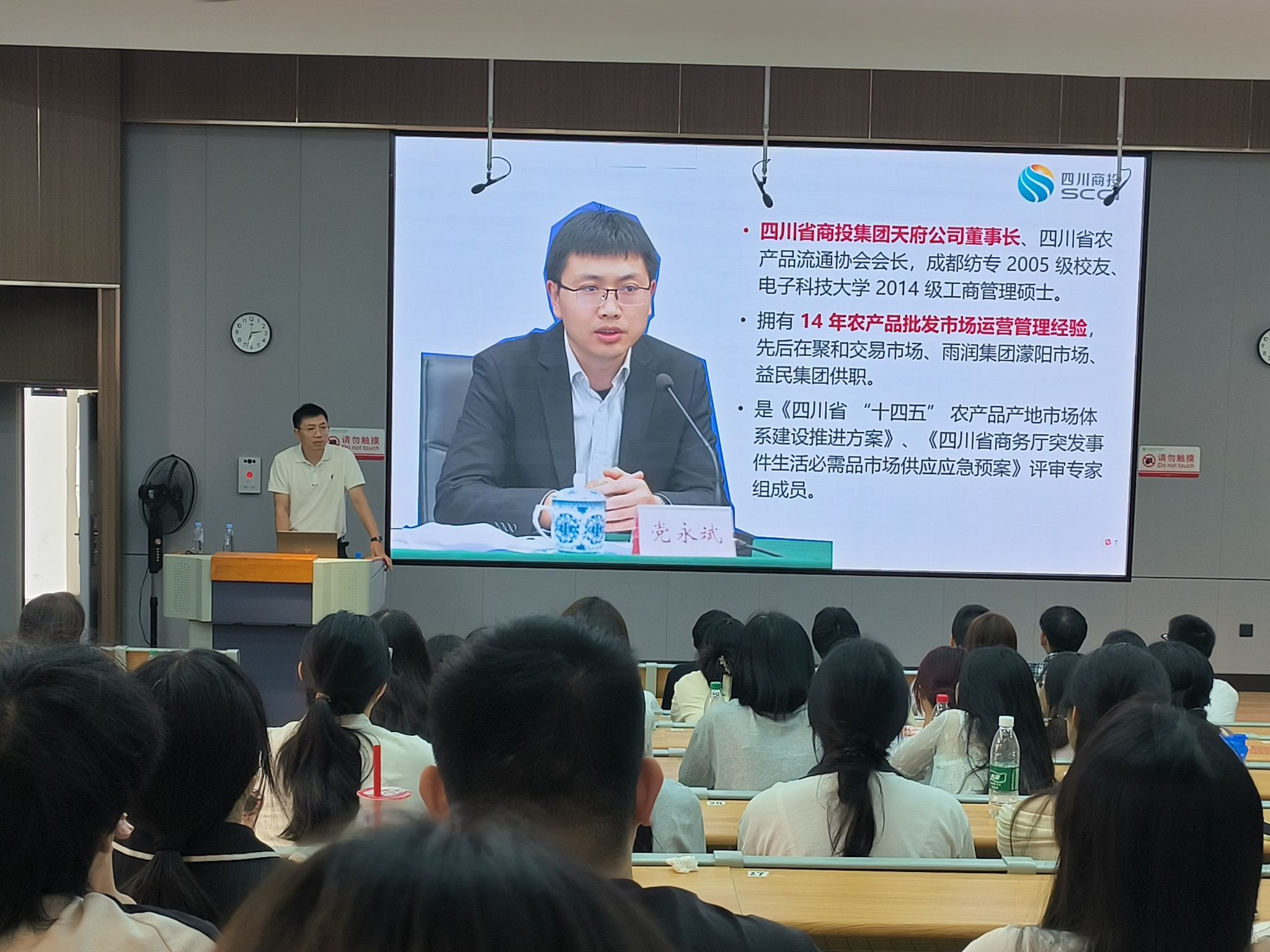 企业导师、优秀校友四川省商投集团县域商业事业部副总经理、天府公司董事长党永斌为同学们分享了供应链管理的起源、特点、概念、核心思想以及全球供应链布局,并以快消品行业为例引导同学们如何分析供应链现状并把握未来的方向,鼓励同学们大胆参加社会实践,不断修正自己的认知,充实自己。