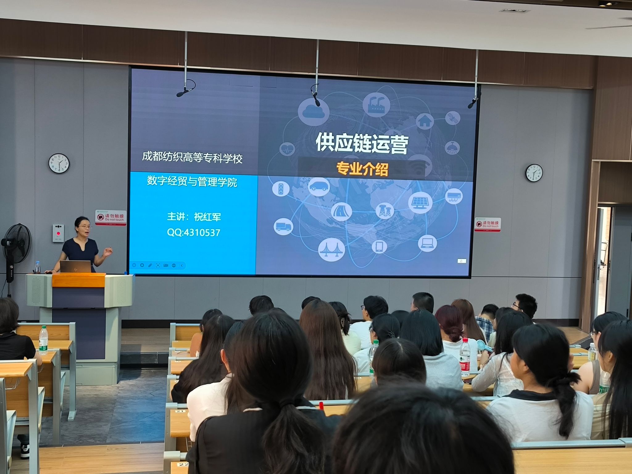 供应链运营专业负责人祝红军老师首先以问卷方式与同学们互动,了解大家对专业的认知程度,从《黑神话悟空》的火爆引发PS5需求量激增现象引导同学们思考供应链是什么,并对课程体系设置、实践教学环节、教师团队、校内外实践基地、专业竞赛与学生社团等情况进行了详细介绍。还从人才需求状况、人才需求特征和成都供应链人才需求情况等三个方面介绍了专业的就业前景,引导同学们做好职业规划,树立正确的就业观。