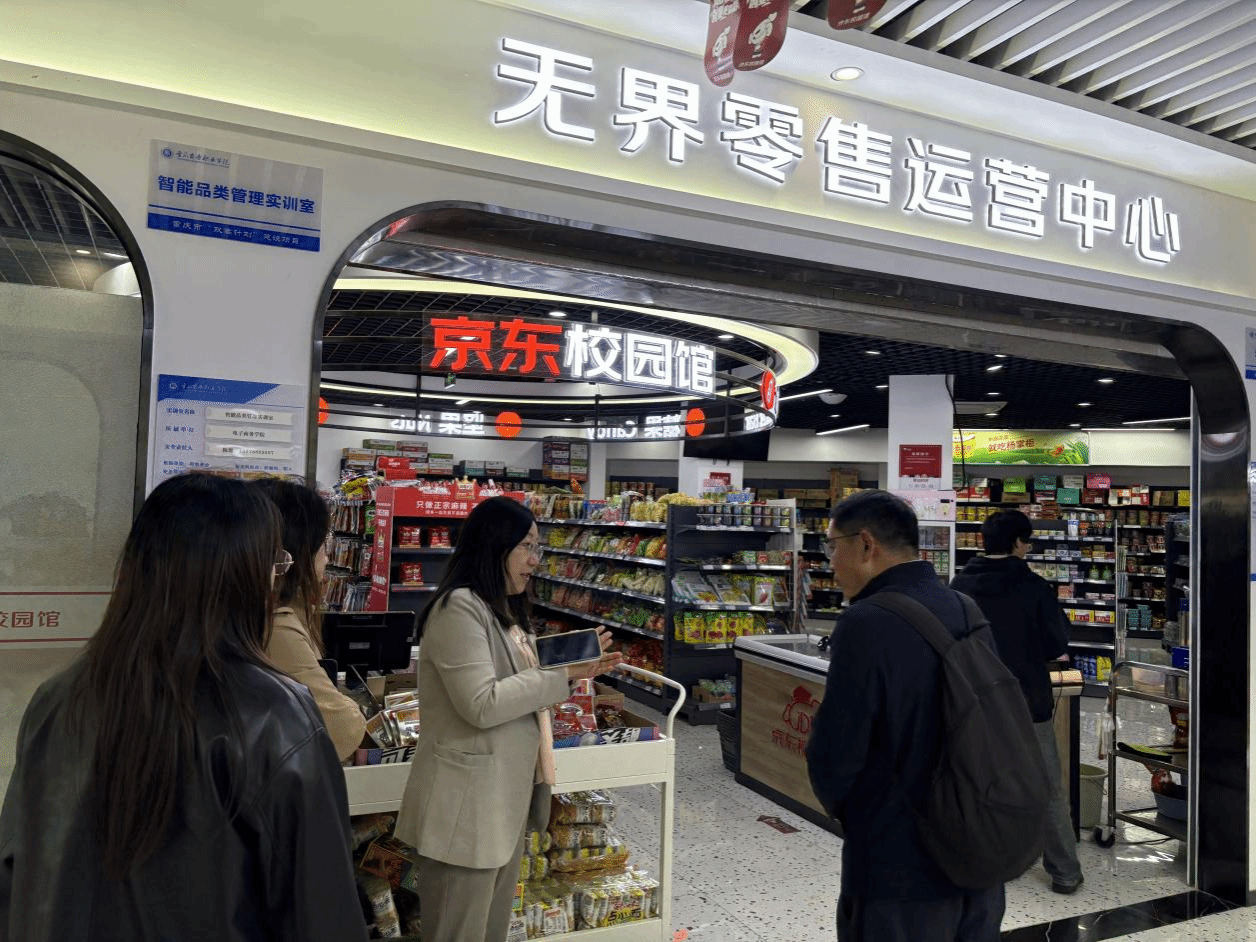 会后,与会部分代表在京东集团相关负责人的陪同下,实地参观了重庆商务职业学院与京东共建的京东电子商务产教融合实训基地及重庆电子商务现代产业学院。基地内设有智能品类管理实训室、无界零售运营中心、京彩校园O2O运营中心等现代化教学实践平台,充分展现了“校企协同、工学结合”的创新模式。在京东无人机训练中心,嘉宾们观摩了无人机物流技术的实操教学场景,对学院“商行天下,学润德才”育人理念下培养的高素质技术技能人才给予高度评价。