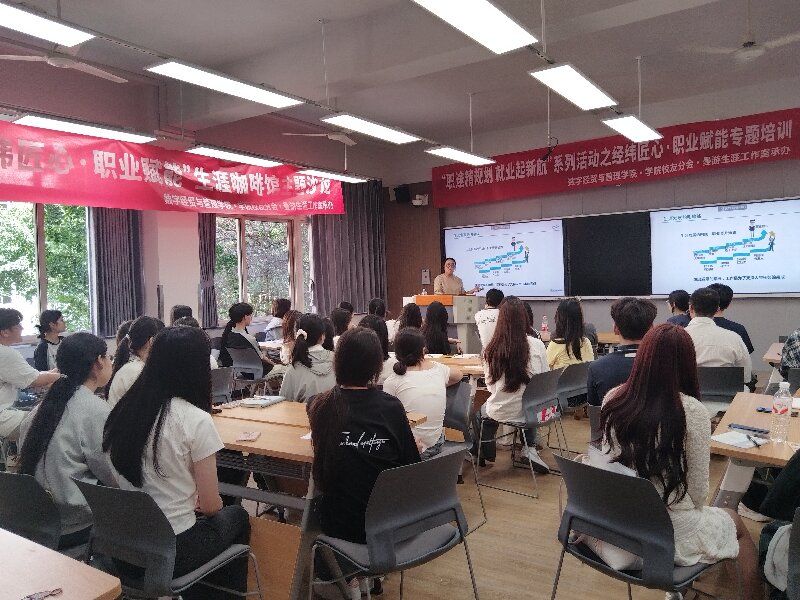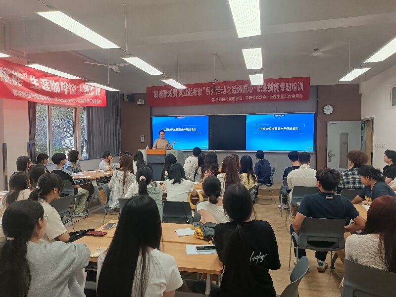 9月23日下午2:00-4:30,数管学院在致知楼A206举办“生涯意识唤醒及未来职业设计”工作坊活动,旨在通过理论引导与实践案例,帮助新生唤醒生涯规划意识,探索专业与兴趣结合的职业发展路径。活动由国家认证职业生涯规划师李曼及校友袁斌学长分享经验,大一新生参与。