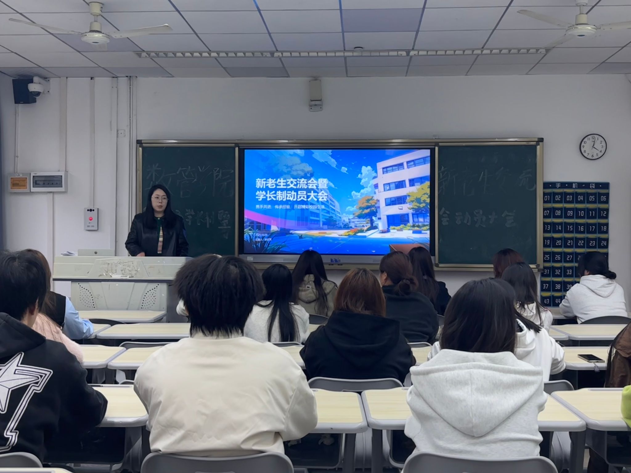10月28日下午,数字经贸与管理学院在南苑B102教室举办新老生交流会暨学长制动员大会。学院专职辅导员贾虹宇、2024级学长团队成员、2025级新生代表参加了本次动员大会。
