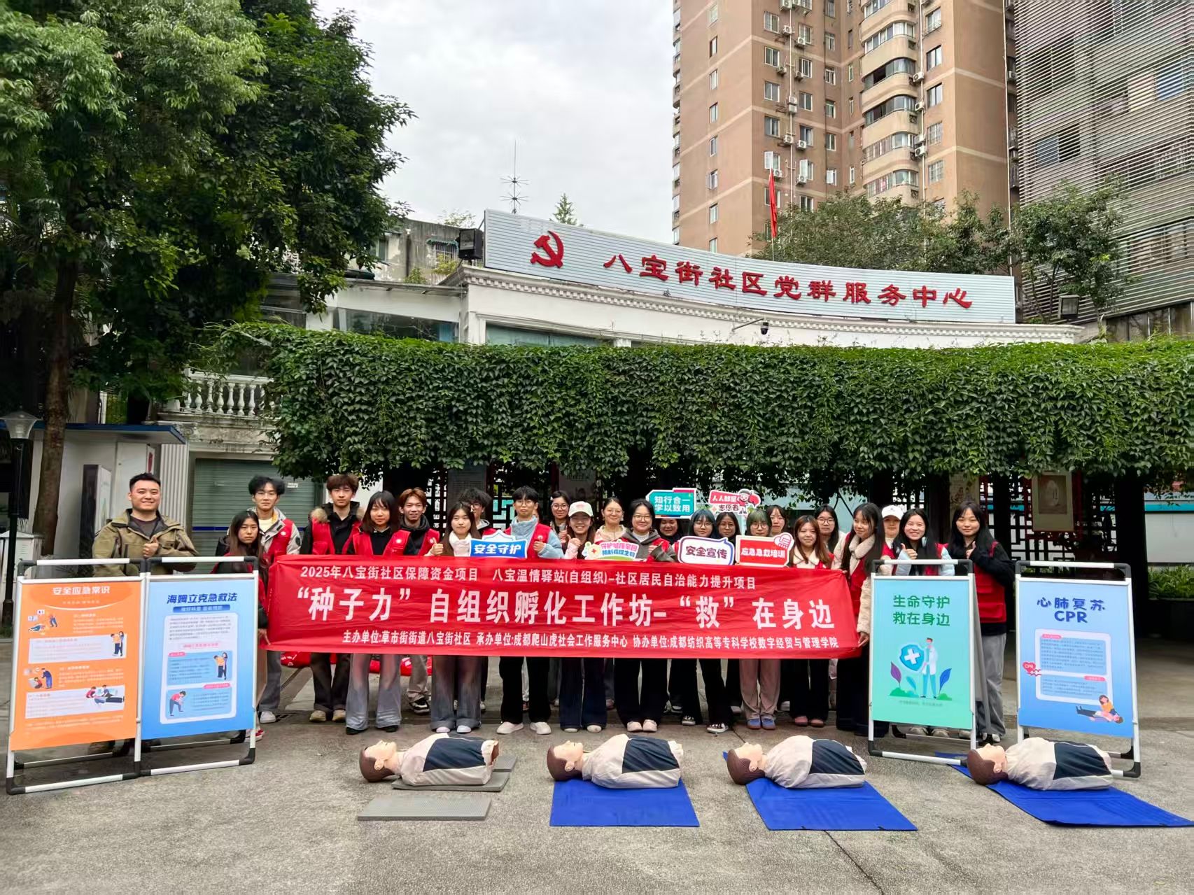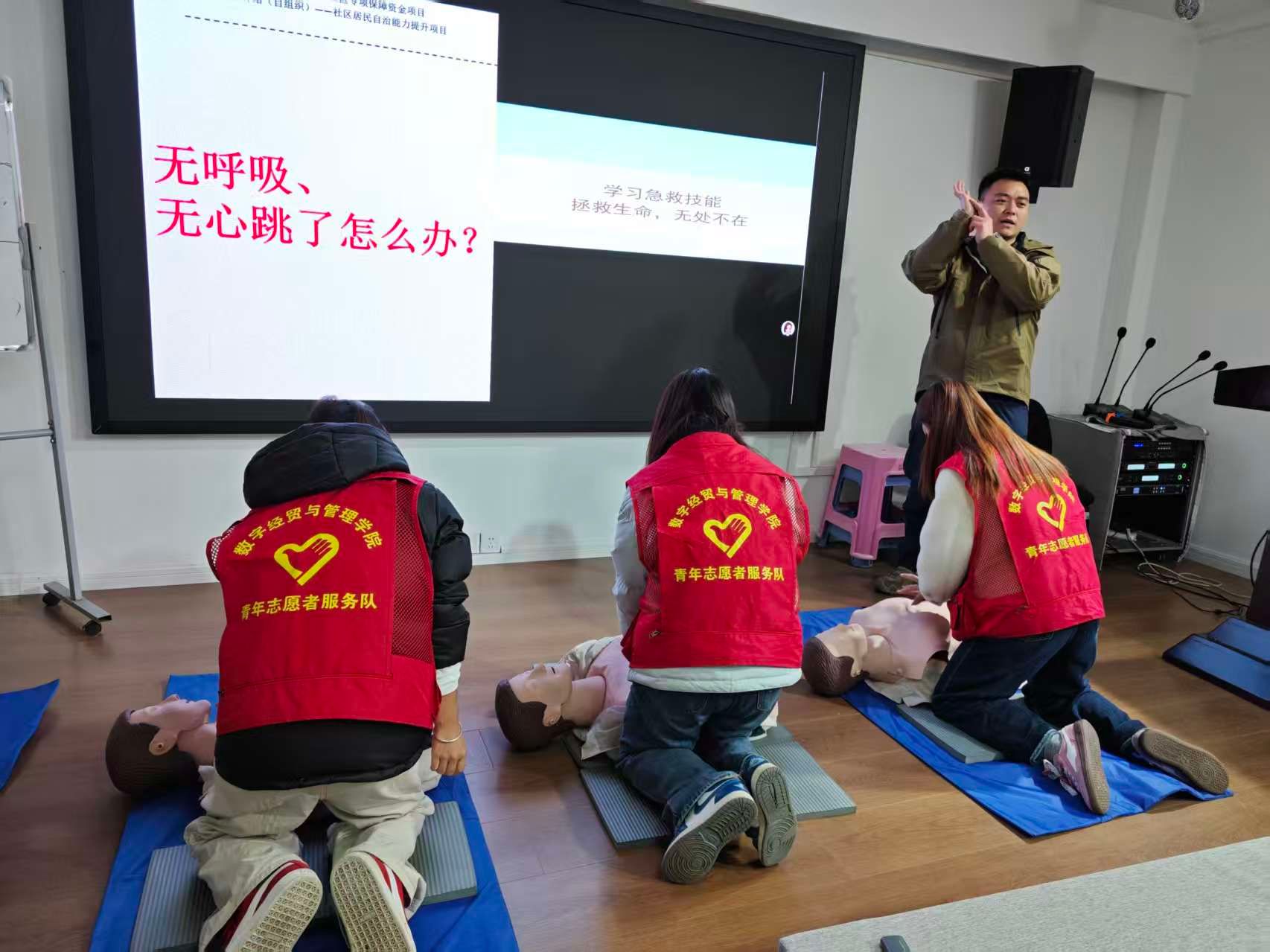本次培训以心肺复苏技能为核心培训内容,八宝街社区邀请了急救领域专业讲师——金牛区红十字山岳救援队任志勇授课,通过“理论精讲+”的模式,让同学们真正掌握挽救生命的关键技能。