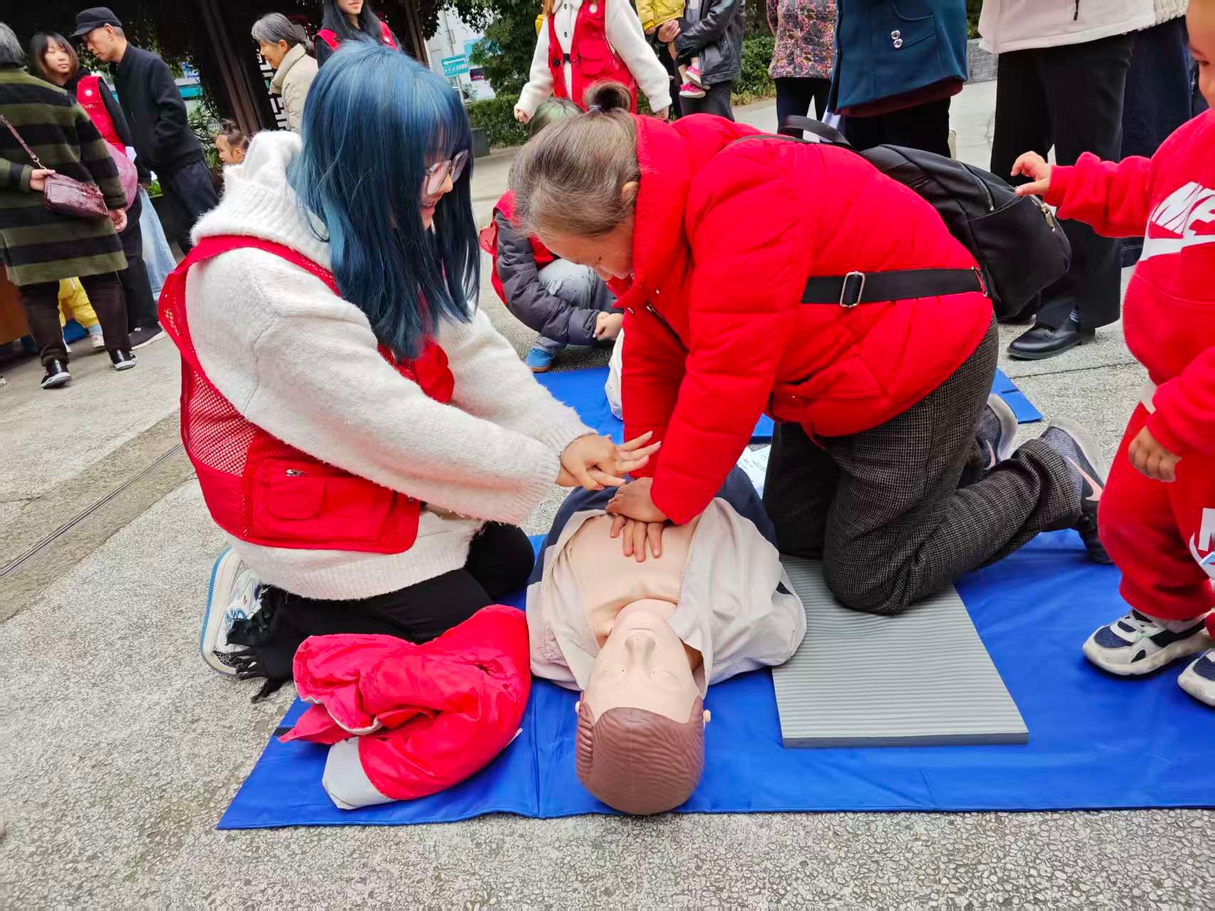 现场还设置了急救知识问答摊位,市民积极参与答题,答对者获得小礼品,互动氛围热烈,不少市民主动询问操作细节,志愿者们耐心解答。