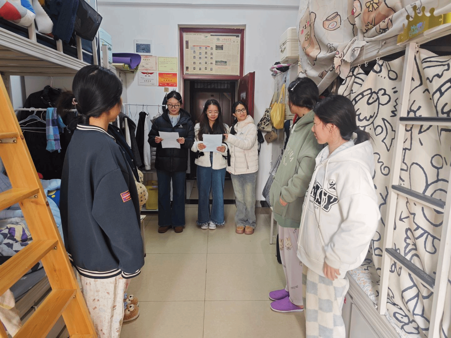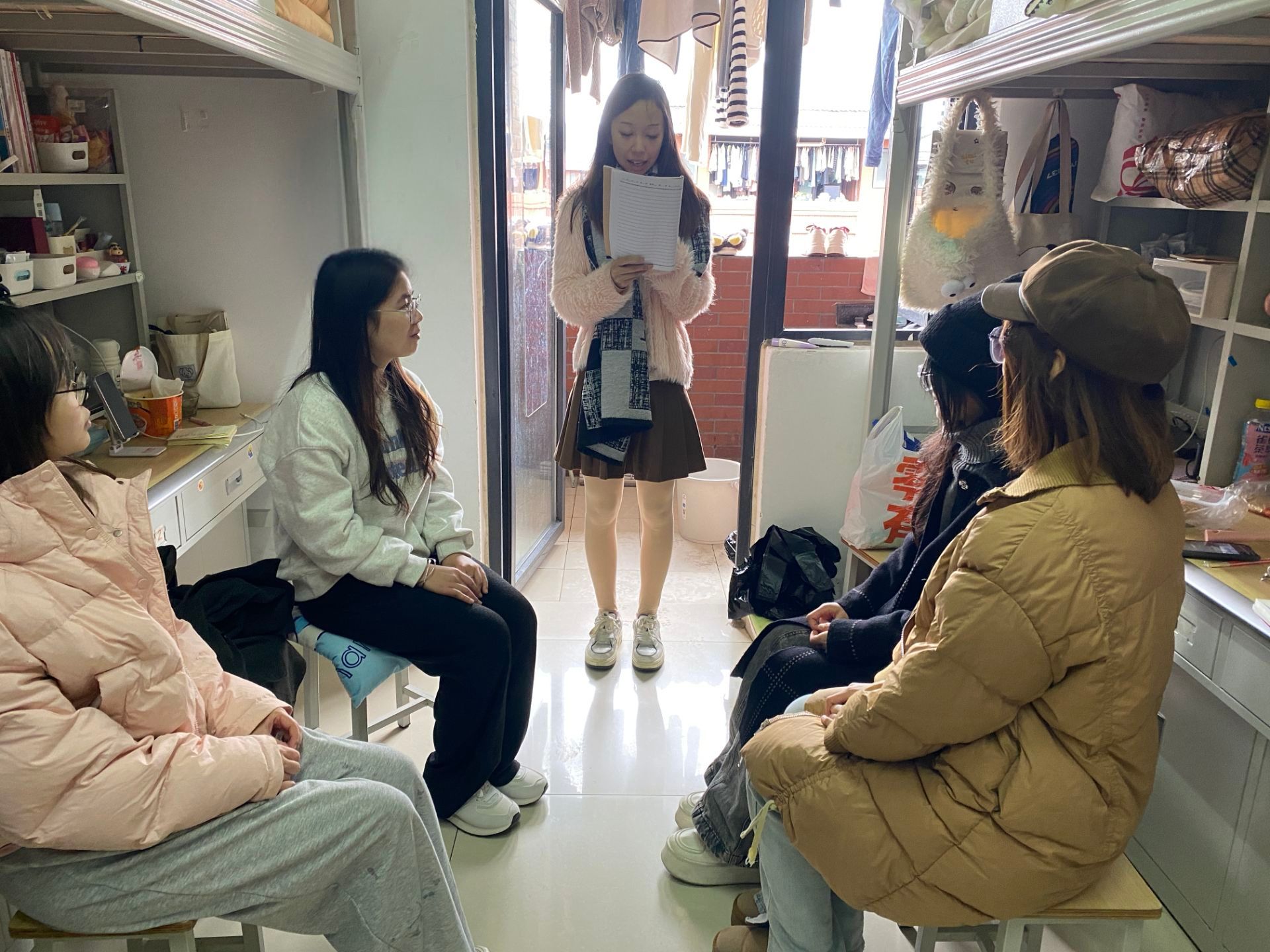 活动围绕理论宣讲、党史故事分享和困惑解答展开。没有讲台的隔阂,没有刻板的流程,党员与同学们围坐在书桌旁、床沿边,以轻松氛围拉开分享序幕。“长征路上,三位女红军借宿徐解秀老人家中,临走时把仅有的一条被子剪下一半留下。这个‘半条被子’的故事,恰恰回答了‘共产党是什么’——就是自己只有一条被子,也要分半条给老百姓的人”;“苏区时期,红军战士即便饥肠辘辘,也严守‘不拿群众一个红薯’的纪律,用行动守住了对百姓的承诺”。党员们饱含情感的讲述,让一个个沉淀在历史中的故事“活”了过来,字里行间都彰显着人民军队铁的纪律与全心全意为人民服务的根本宗旨。