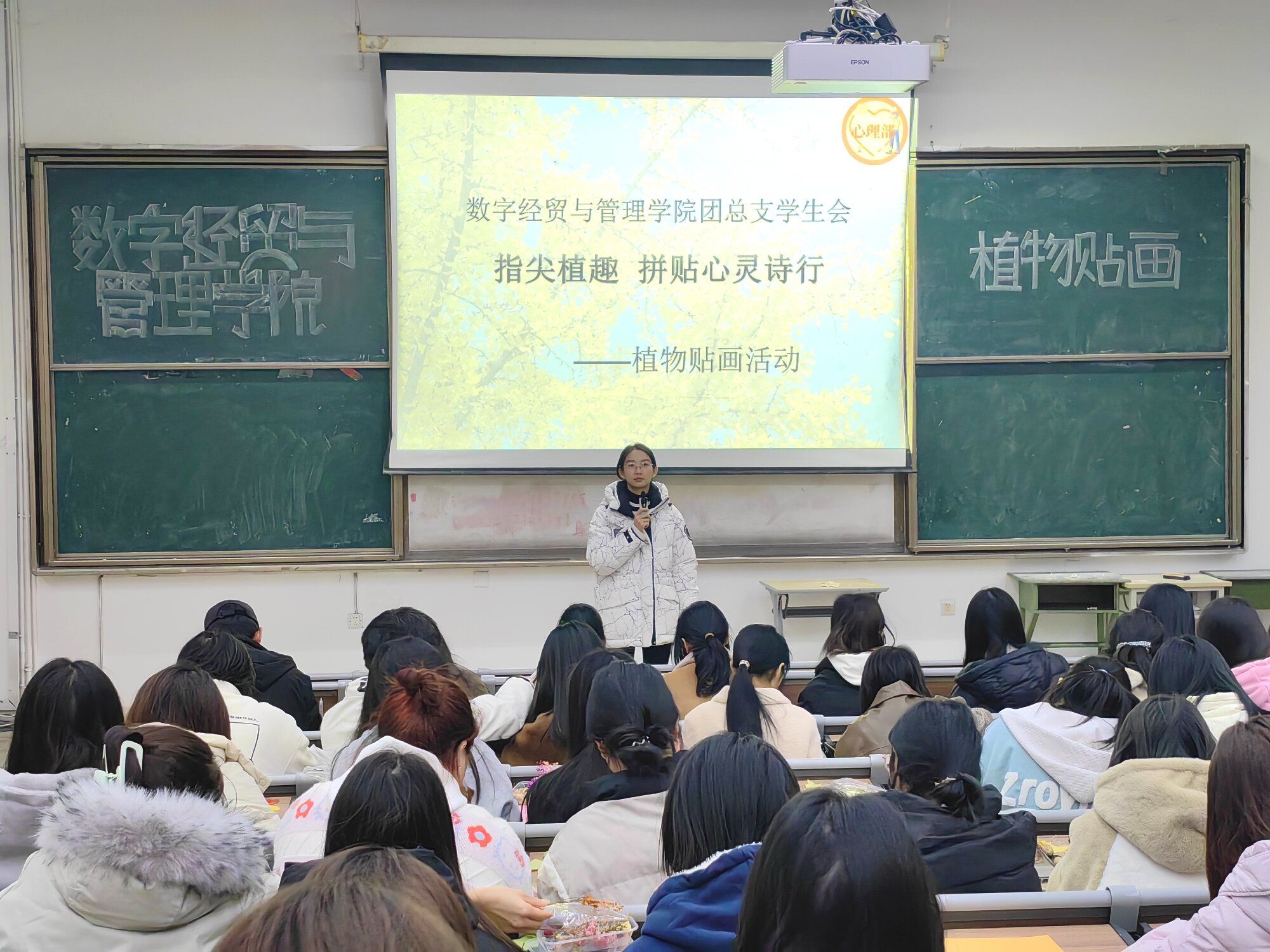 11月18日下午,数字经贸与管理学院团支部学生会心理部在南苑致知楼C102举办了“指尖植趣,拼贴心灵诗行——植物贴画”活动。数管学院心理部指导老师何舒婷、学生会心理部成员、学生会宣传部成员以及大一大二年级的130名学生共同参与了本次活动。