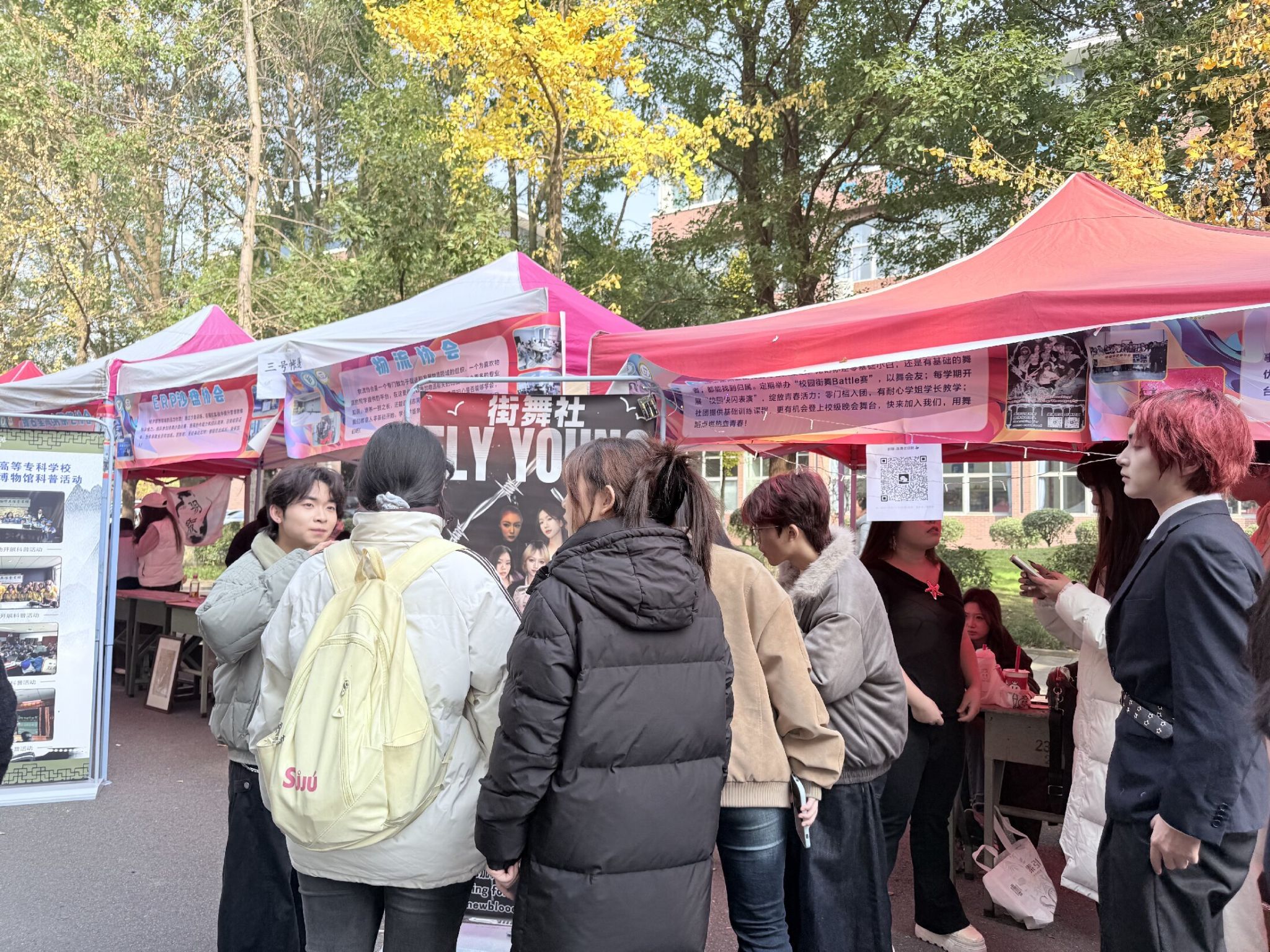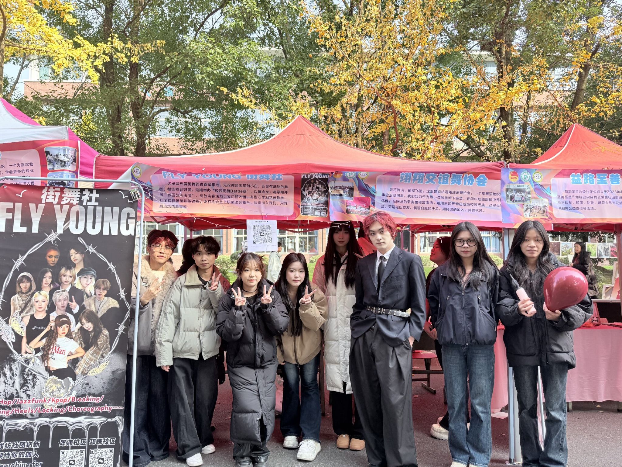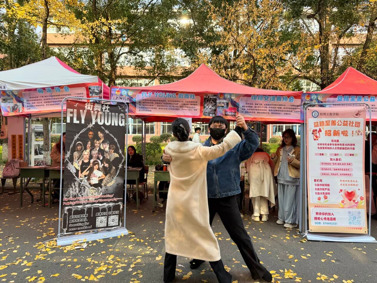 招新现场氛围热烈,FLY YOUNG街舞社、翊翔交谊舞协会、物流协会、演讲协会、ERP沙盘协会等社团依次设展,各社团负责人现场热情地介绍社团特点:街舞社涵盖多个舞种;交谊舞协会推出零基础课和舞会展演,现场邀学生体验舞步;演讲协会设即兴赛、口才营,以模拟演讲互动吸睛;物流协会主打实操实训与企业交流;沙盘协会开展沙盘竞赛,现场演示企业运营模拟。整个现场通过展板、互动帮助学生选社团,咨询报名者众多。