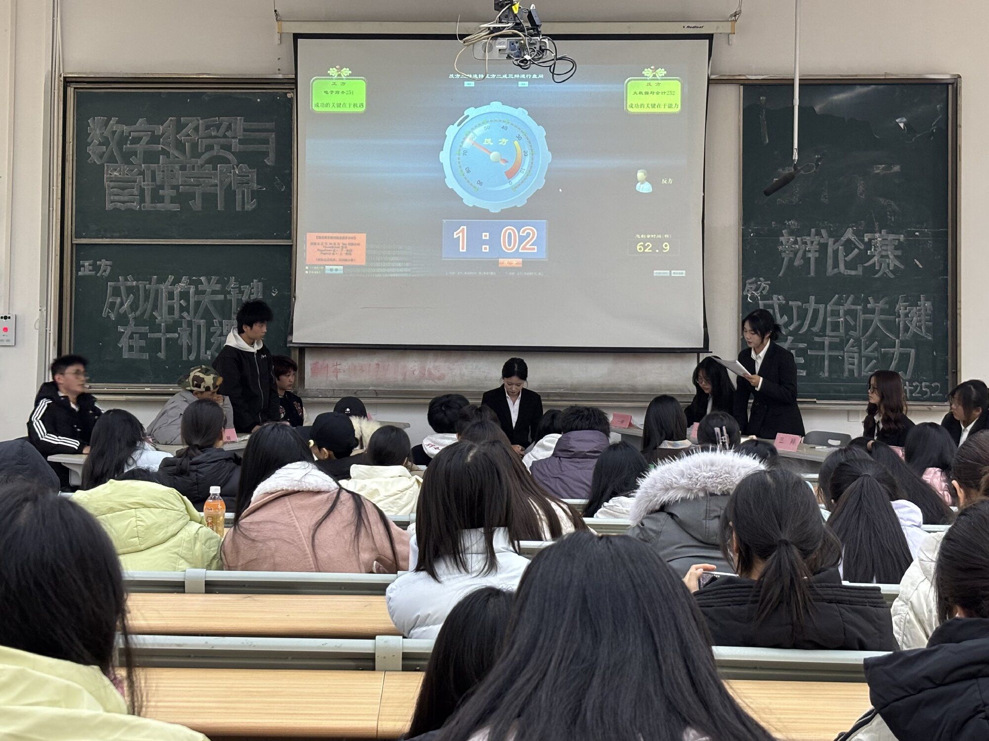 12月9日,数字经贸与管理学院第二十七届班级辩论赛初赛在致知楼C201教室如约启幕。学院专职辅导员李韵、贾虹宇亲临现场指导,与百余名师生观众一同落座,共同见证这场以辩会友、以思启智的青春盛宴。