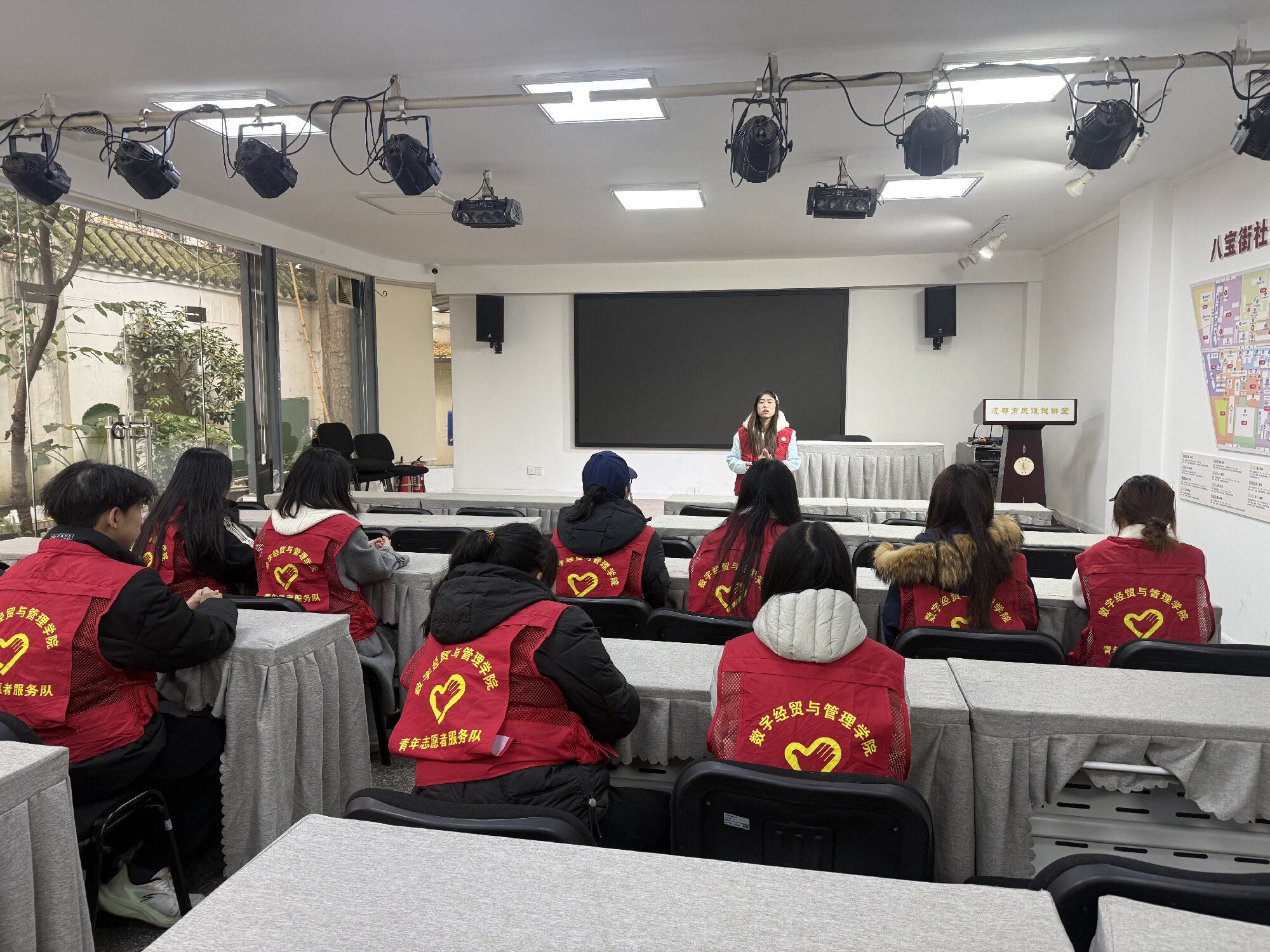 2025年12月13日下午两点,数字经贸与管理学院青年志愿者服务队协助成都市青羊区八宝社区成功举办“洗墨寻迹 墨香传家”主题活动,以多样形式弘扬优良家风、传承传统文脉,吸引了众多社区居民参与。