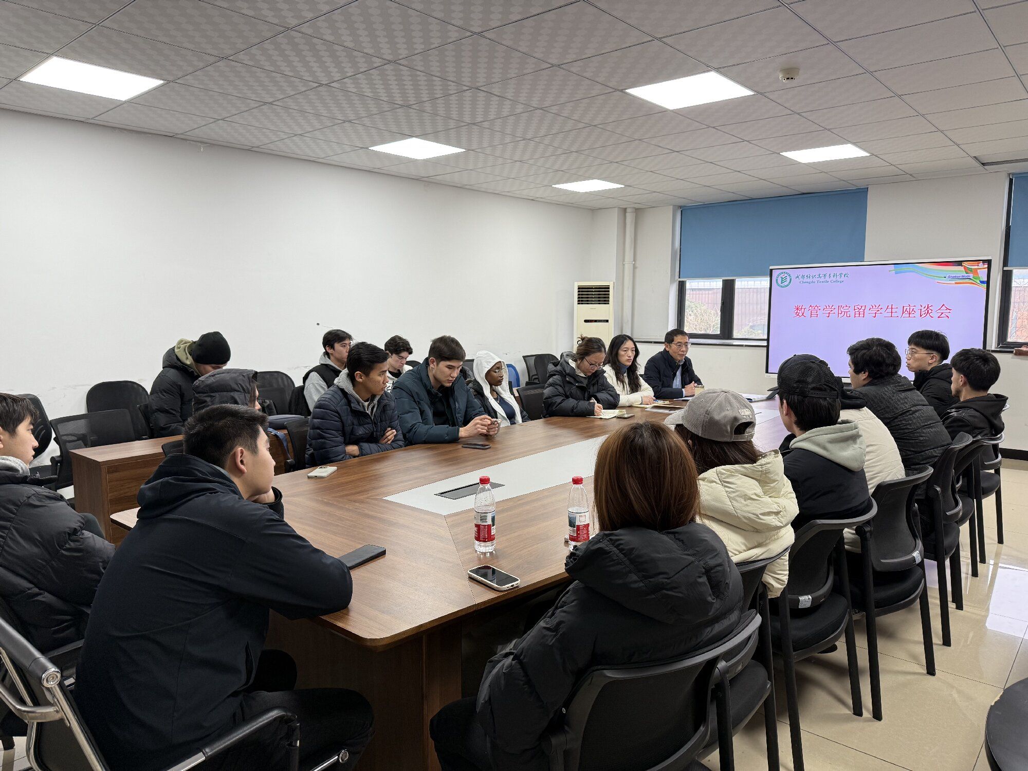 期末临近,为切实了解留学生本学期在校学习生活情况,进一步规范留学生管理工作,强化留学生纪律意识。12月24日上午,数管学院在融创楼A402组织召开了留学生期末座谈会。学院党总支书记王霖、党总支副书记何酉宁、副院长凌书娟、专任教师徐杨森及学院全体留学生参加了会议,王霖主持会议并讲话。