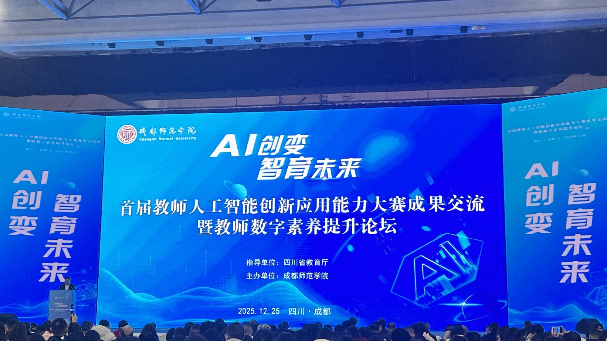12月25日,首届教师人工智能创新应用能力大赛成果交流暨教师数字素养提升论坛在成都师范学院温江校区举行。数字经贸与管理学院副院长(主持工作)何凌、副院长凌书娟带队,专业教师张倩、邓小翠、吴秋婧、李居垚、杨蕊绮、郑晗、梁伟、冉亚玲全程参会,认真学习优秀案例,积极参与论坛研讨。