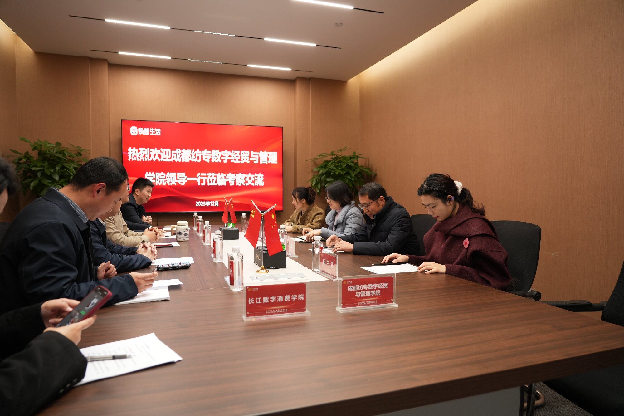 12月26日,数字经贸与管理学院党总支书记王霖、副院长(主持工作)何凌带队,电子商务专业负责人赵韦韦、供应链运营专业骨干教师周千又等一行,前往四川省长江集团数字消费学院开展交流座谈,受到长江数字消费学院执行院长毛健宇、招生处处长任毅、招生处副处长张晓磊等的热情接待。