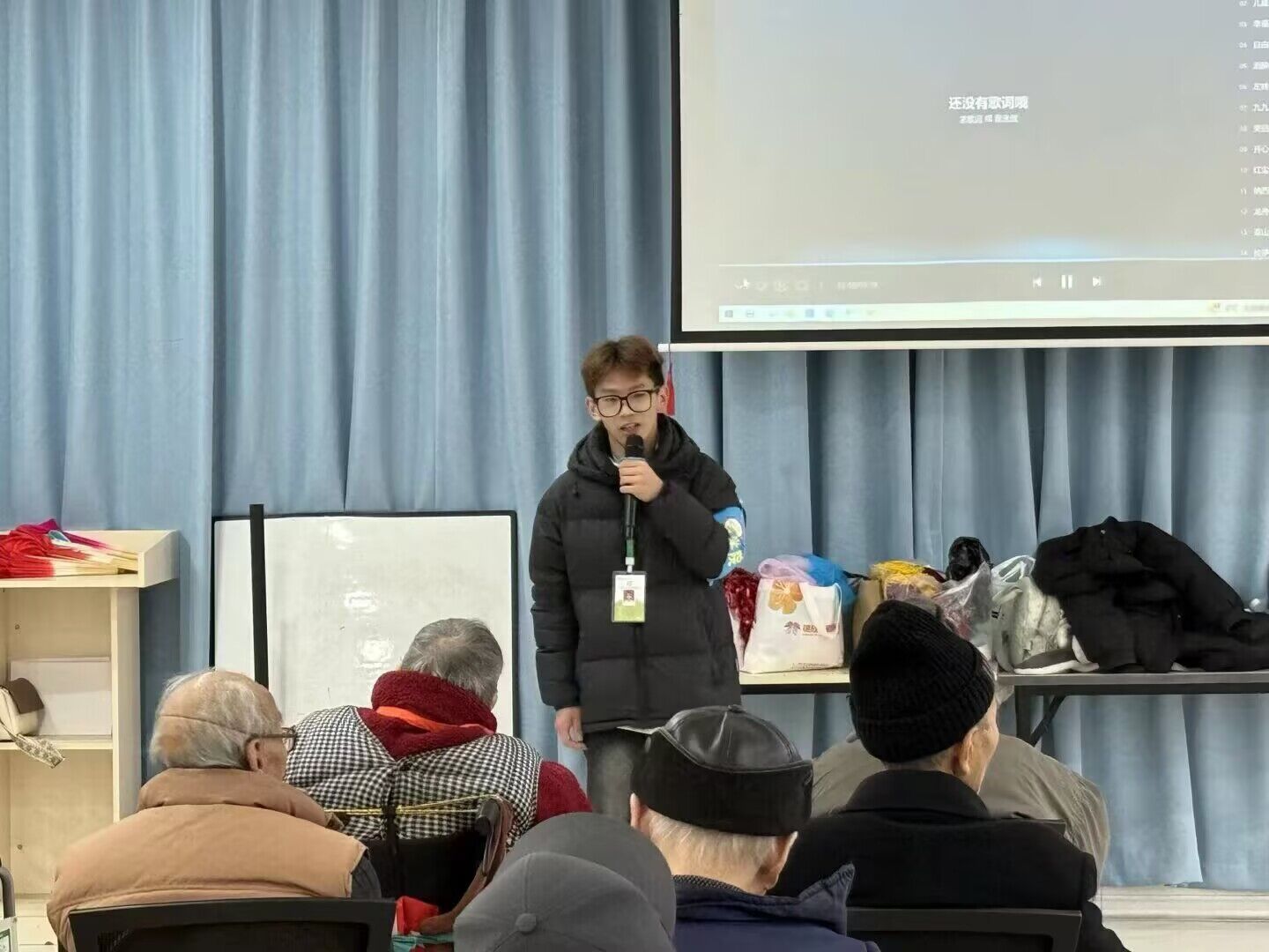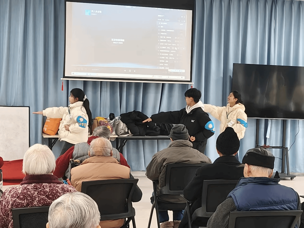 12月27日上午,数字经贸与管理学院青年志愿者服务队赴锦欣九九乐福养老中心,开展了以“寸心报春晖·志愿敬耆年——用陪伴点亮晚年时光”为主题的敬老志愿活动,为老人们带来了一场温馨而精彩的文艺演出与暖心陪伴。
