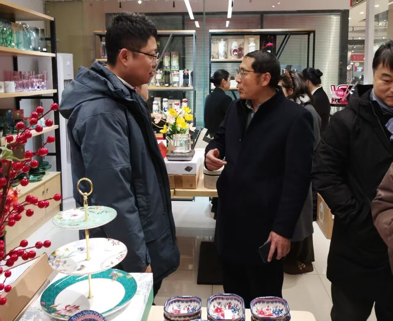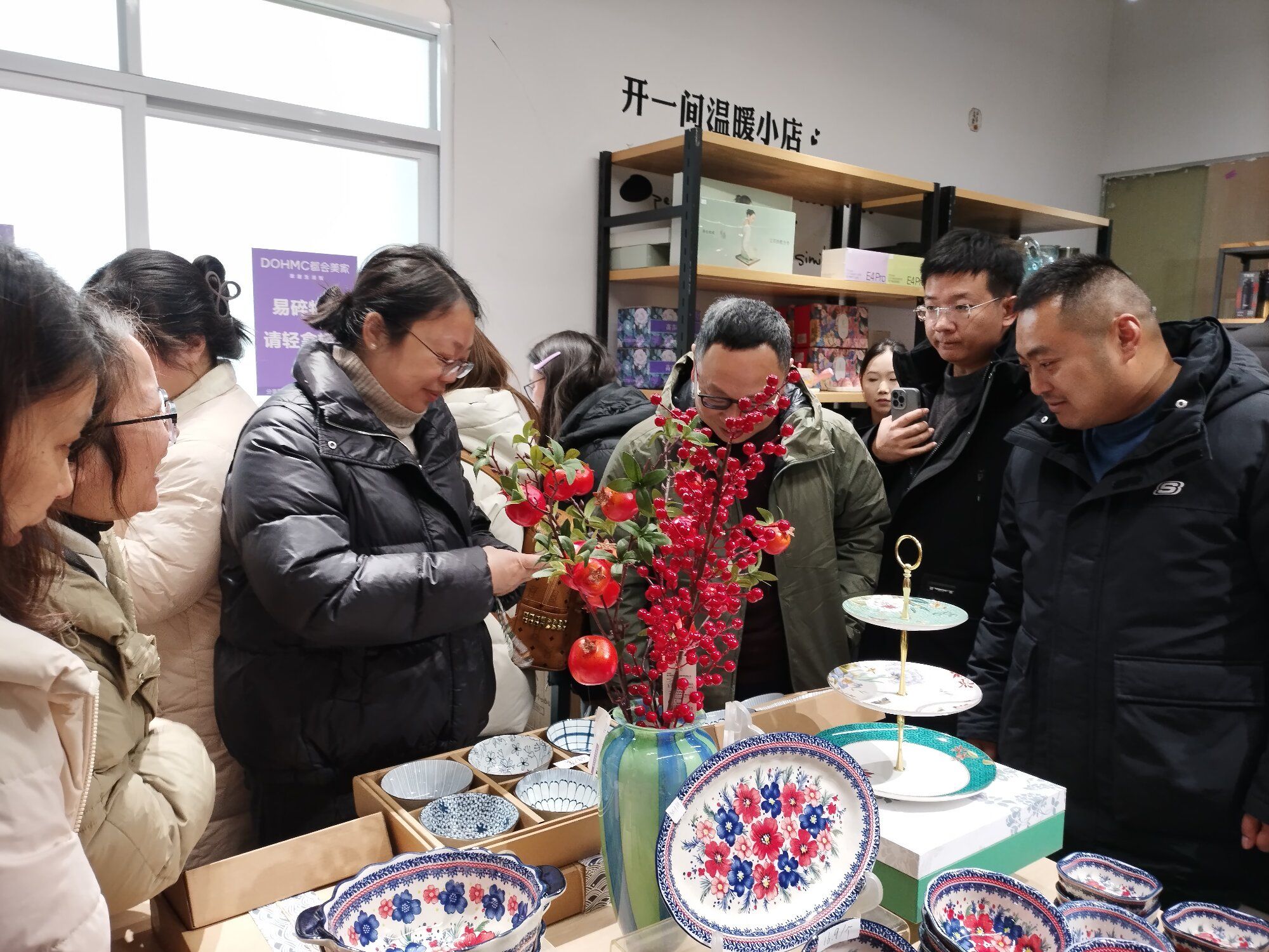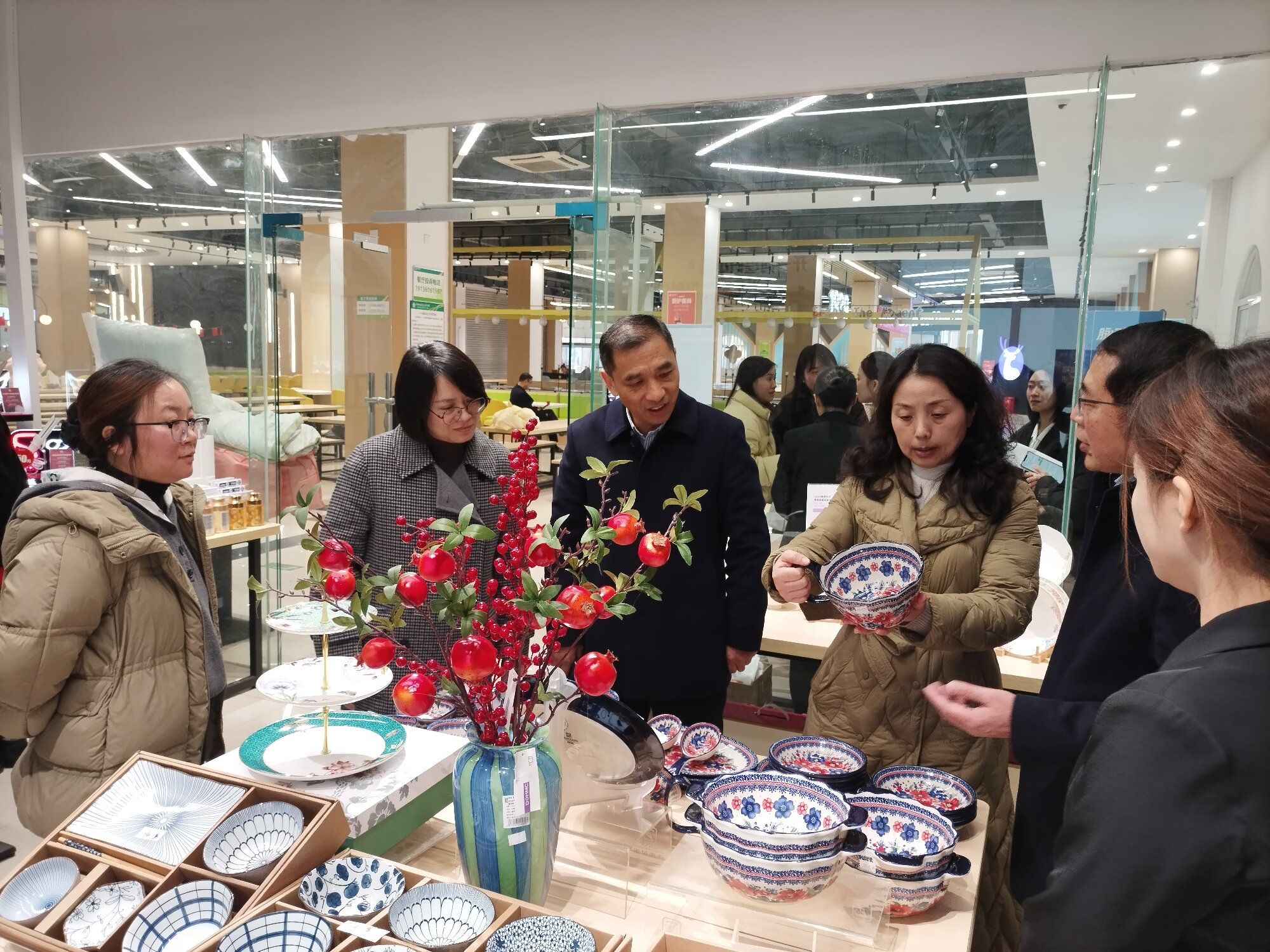 领导嘉宾、老师与实训学生团队在实训店门口合影留念,记录下这一意义非凡的时刻。随后,与会领导嘉宾实地参观实训店,详细了解商品陈列、实训流程规划等情况,并与师生亲切交流。