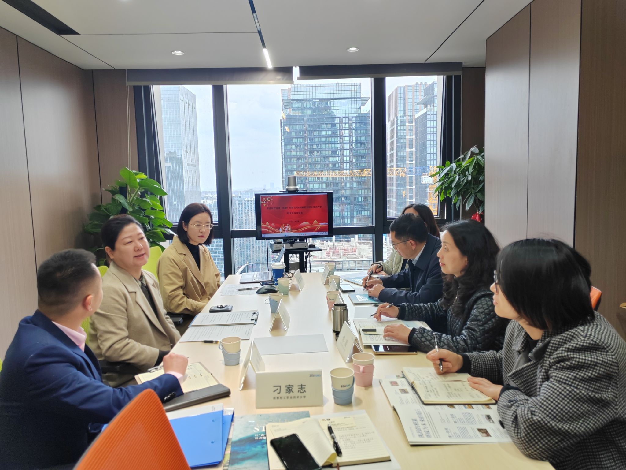 3月18日下午,张江婴同志率数管学院王霖、何凌、凌书娟以及学生管理与就业创业工作处刁家志一行,前往泉盛餐饮管理(成都)有限公司访企拓岗,与公司总经理文颖妍、人事经理杜雪菲、校企合作和BPO业务负责人蒲思宇交流,洽谈企业定制班。