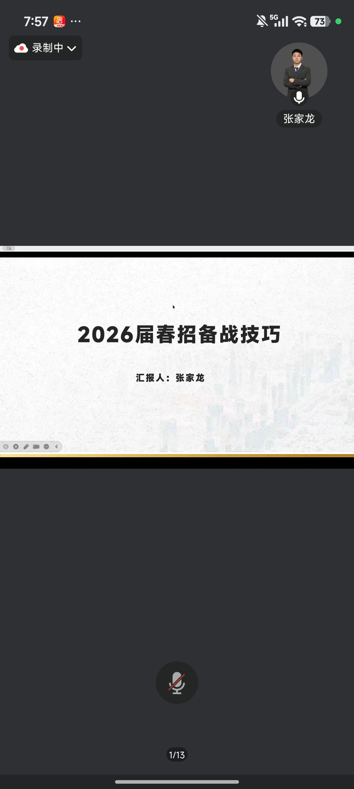 会上,王霖介绍了当前的就业形势,强调了春季招聘的关键节点和重要意义,鼓励同学们认清就业形势、明确自身定位,以积极主动的姿态迎接春招挑战,切实将个人发展与时代使命相融合。张家龙围绕春招趋势、AI工具应用、个性化规划、实战技巧这四大模块,系统讲解了简历制作、面试应对等核心内容,帮助同学们提升求职能力、缓解就业焦虑。