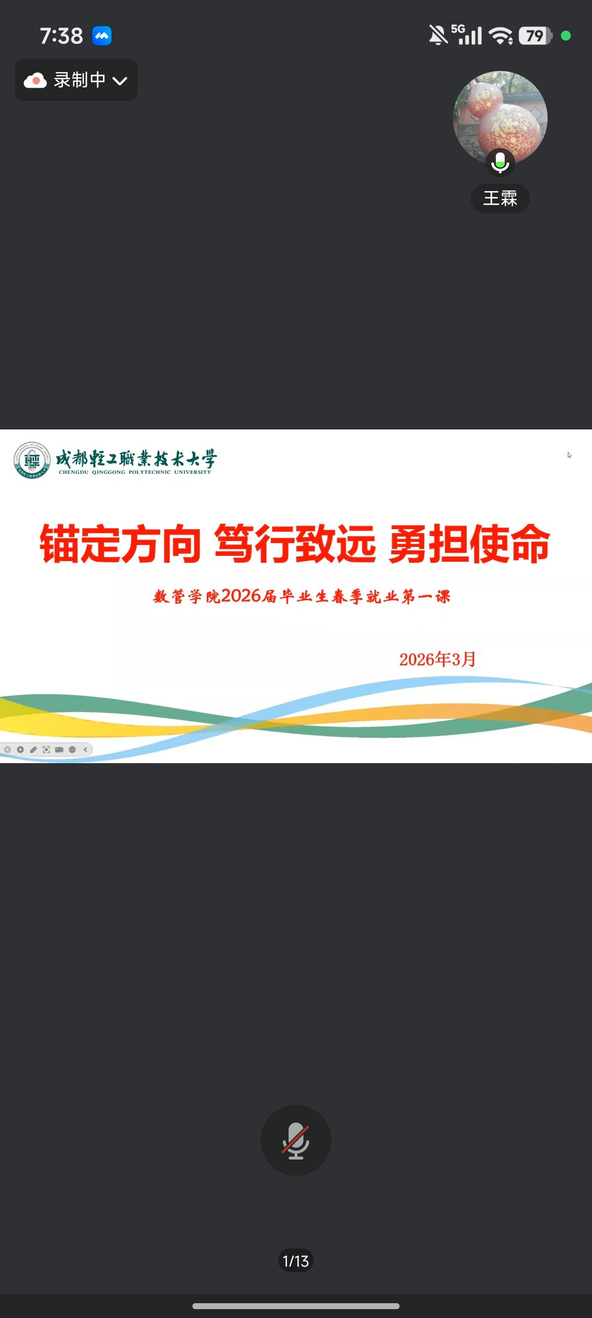 为扎实推进学院2026届毕业生就业工作,助力同学们精准把握春招趋势、提升求职实战能力,3月19日,数管学院以线上会议的形式,举办了以“锚定方向 笃行致远 勇担使命”为主题的春季就业第一课。此次课程由王霖老师以及有见有行商务经理、校友张家龙进行专题分享,2026届毕业生参与学习,学院辅导员徐燕老师主持会议。