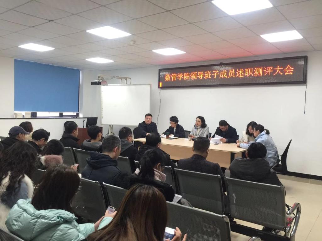 1月2日,数管学院在产教融合楼A408会议室举行学院领导班子成员述职测评大会,机关党委书记兼组织副部长刘东渝、纪委监察处张梅老师和学院全体教师参加了大会,学院党总支书记王霖主持会议。
