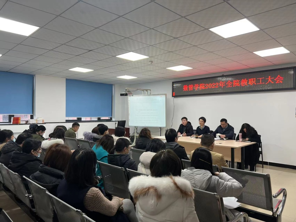 会后,学院领导班子分别到各个教研室,围绕2022年重点任务和目标进行了细化和讨论,明确了各个教研室的重点工作和目标,让学院的重点工作和目标落到实处。2022年春季学期第一教职工大会明确了学院的发展目标和重点,为全院师生指明了努力方向和目标,起到了凝心聚力,共谋发展的作用。