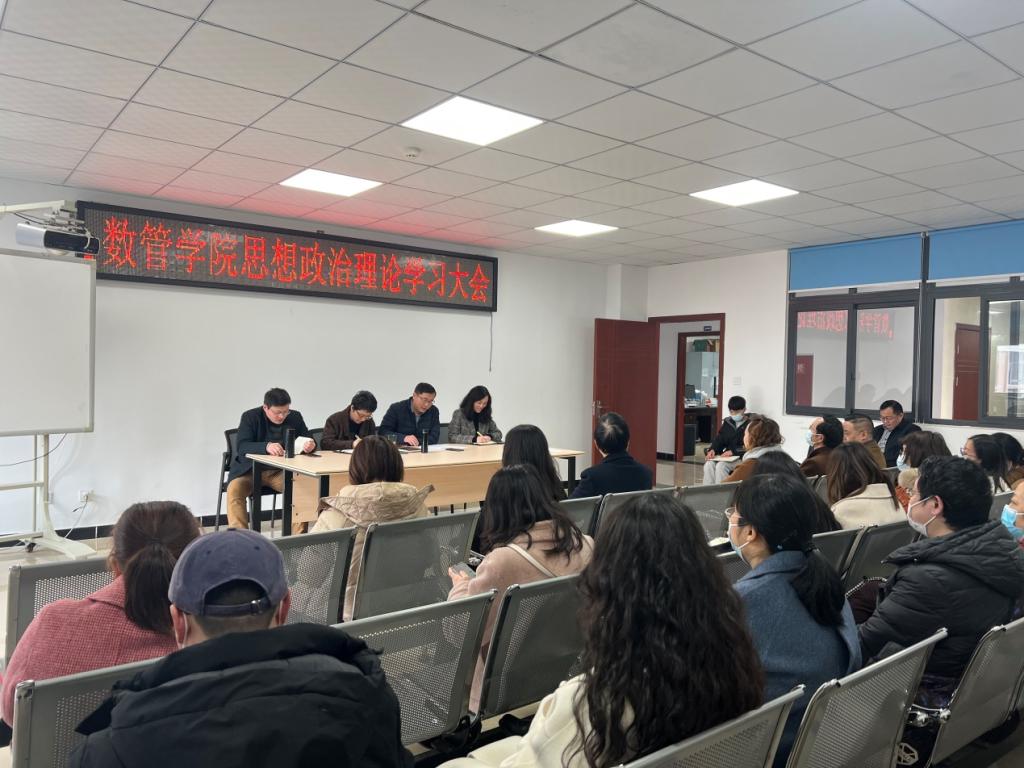 3月1日,数管学院在A408会议室召开思政理论学习会,学习习近平总书记在中央党校2021年中青班开班式上讲话的精神,学院全体教师参会,王霖书记主持会议。
