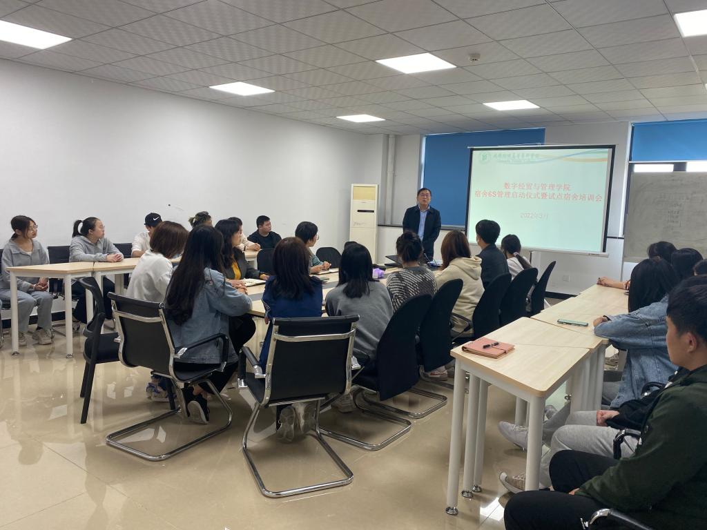3月10日下午,数管学院召开了宿舍6S管理启动仪式暨试点宿舍培训会,参加会议的有学院院长王浩澂、党总支书记王霖、党总支副书记何酉宁,辅导员曾霜霜、何敏、贾虹宇以及20余名一年级学生代表,会议由学院党总支书记王霖主持。