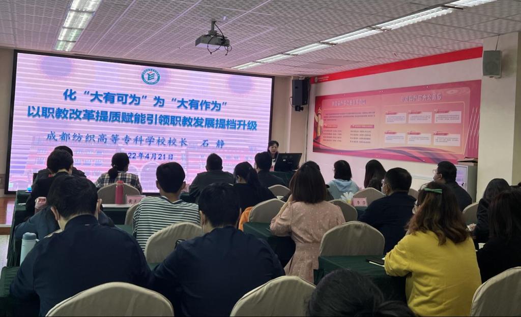 4月21日上午,校长石静应邀为我校承担的2021年度四川省高职教师企业跟岗实践项目(财贸经管大类)国培学员做《化“大有可为”为“大有作为”——以职教改革提质赋能引领职教发展提档升级》的专题讲座。讲座由数字经贸与管理学院院长王浩澂教授主持,数管学院中青年教师也参加了本次讲座。
