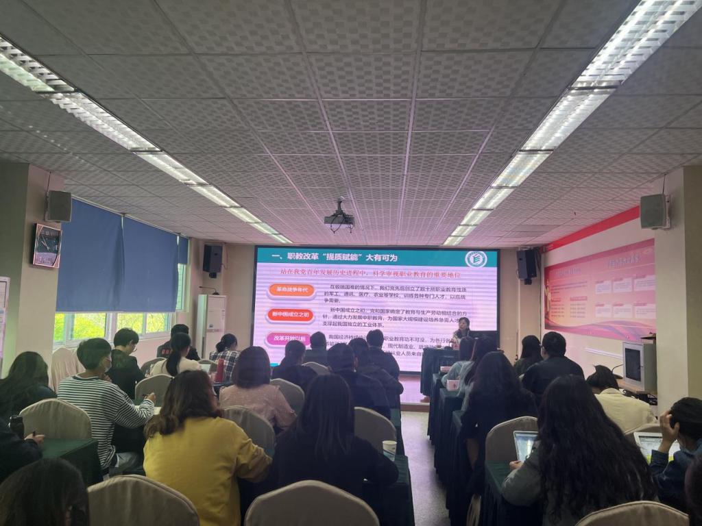 石校长从职教改革“提质赋能”大有可为,职教发展“提档升级”大有作为,干事创业“提剑汗马”以何作为三个方面强调了职业教育应化“大有可为”为“大有作为”。她指出,职业教育应转观念、强内涵、增效益,把人才培养体系由小“h”型变成大“H”,深刻理解职教改革的重大意义,大力凸显职业教育的类型特色,全面提升职业教育的服务能力,要坚持办面向市场的就业教育、坚持办面向能力的实践教育、坚持办面向社会的跨界教育,推进校企双元育人、岗课赛证融合及“三教”改革,加强产业、职业、敬业教育。
