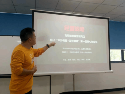 成都野藤贸易公司刘总介绍了公司情况,野藤公司为CAMEL骆驼品牌川渝藏总经销,在西南地区开设了直营专卖店和加盟专卖店共计100多家,会员20多万人,有着丰富的品牌运营和渠道管理经验,是西南地区最大的户外系列产品销售公司。野藤通过线下店+线上商城+直播+俱乐部+精致露营的方式来打造“户外生活方式第一品牌”。野腾智慧门店采用三网合一形式进行运营(天网:微商城+直播,地网:实体店,人网:社群+俱乐部),独创C68管理体系,店铺前台:六脉神剑-管理6大工具,公司后台:天龙八部-后台8大岗位。通过在学校建立生产性实训基地,把公司管理体系和智慧门店全套前移到学校,使学生未出校门就可以体验到企业的实际场景,提高学生就业预期。
