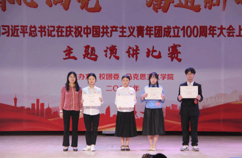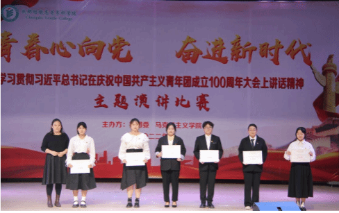 本次比赛以学习贯彻习近平总书记在庆祝中国共产主义青年团成立100周年大会上讲话精神为主要内容,校团委办公室主任韦敏、马克思主义学院教师叶翠兰老师、吴娅担任比赛评委。来自九个学院18位优秀选手参加了比赛,比赛活动采取线上线下相结合的方式进行,经过激烈逐角,学院国贸211毛晓雨和李银山同学分别荣获二等奖、三等奖,校团委书记徐瑾等领导和老师分别为获奖选手颁奖。