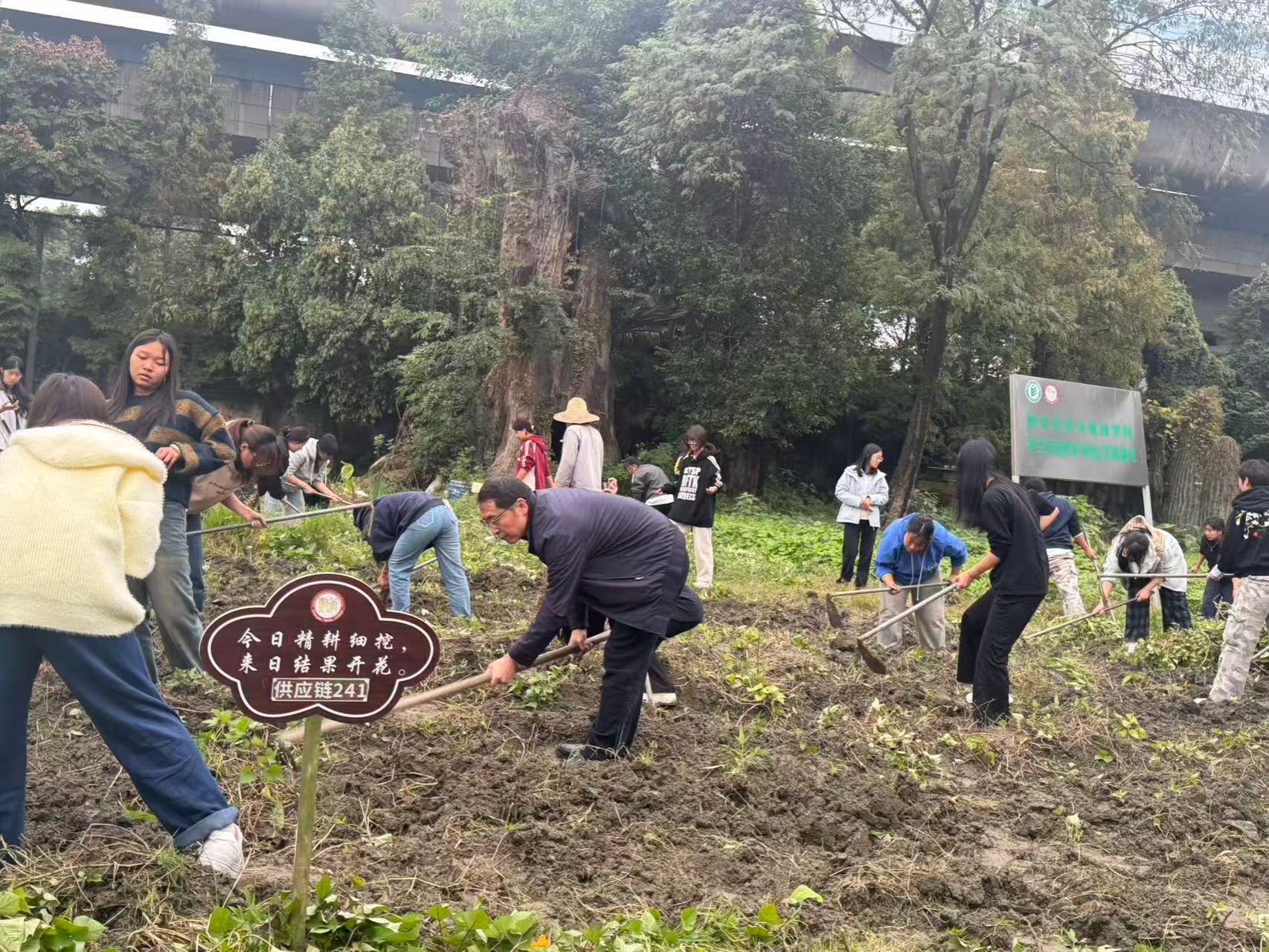 11月中旬至月末,种植实践接续推进。供应链251、电商251、电商252三个班级的97名学子,对采收后的红薯地进行松土、清除残根,为油菜苗移栽筑牢基础。在冉隆奎老师的细致指导下,同学们扶正嫩绿菜苗、细心填土压实,后续及时排查补栽未成活的幼苗,每一个环节都精益求精,用严谨态度呵护劳动成果,在劳作中锤炼责任担当。