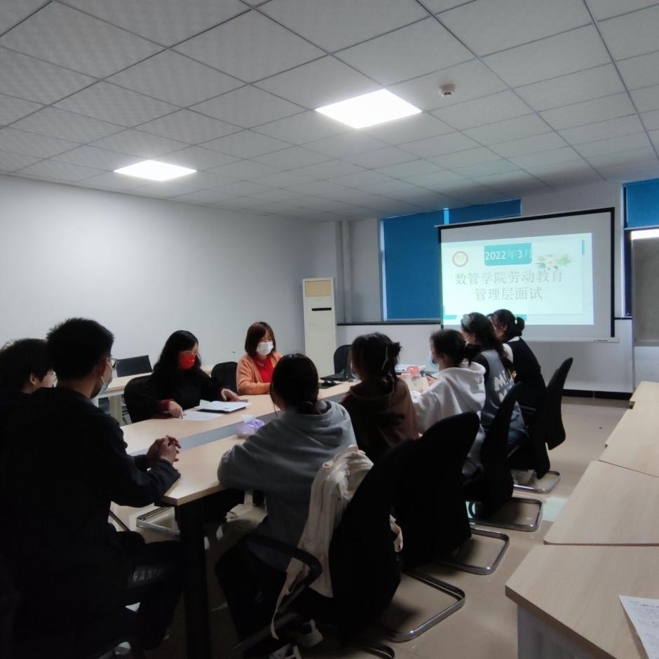 为了在劳动教育中充分发挥同学们自主管理的能力,数管学院成立了劳动教育项目部,并面向全院学生招募管理层,经过层层筛选,8名同学在20余名同学中脱颖而出,顺利通过了3月22日的集体面试,成为项目部管理层成员。